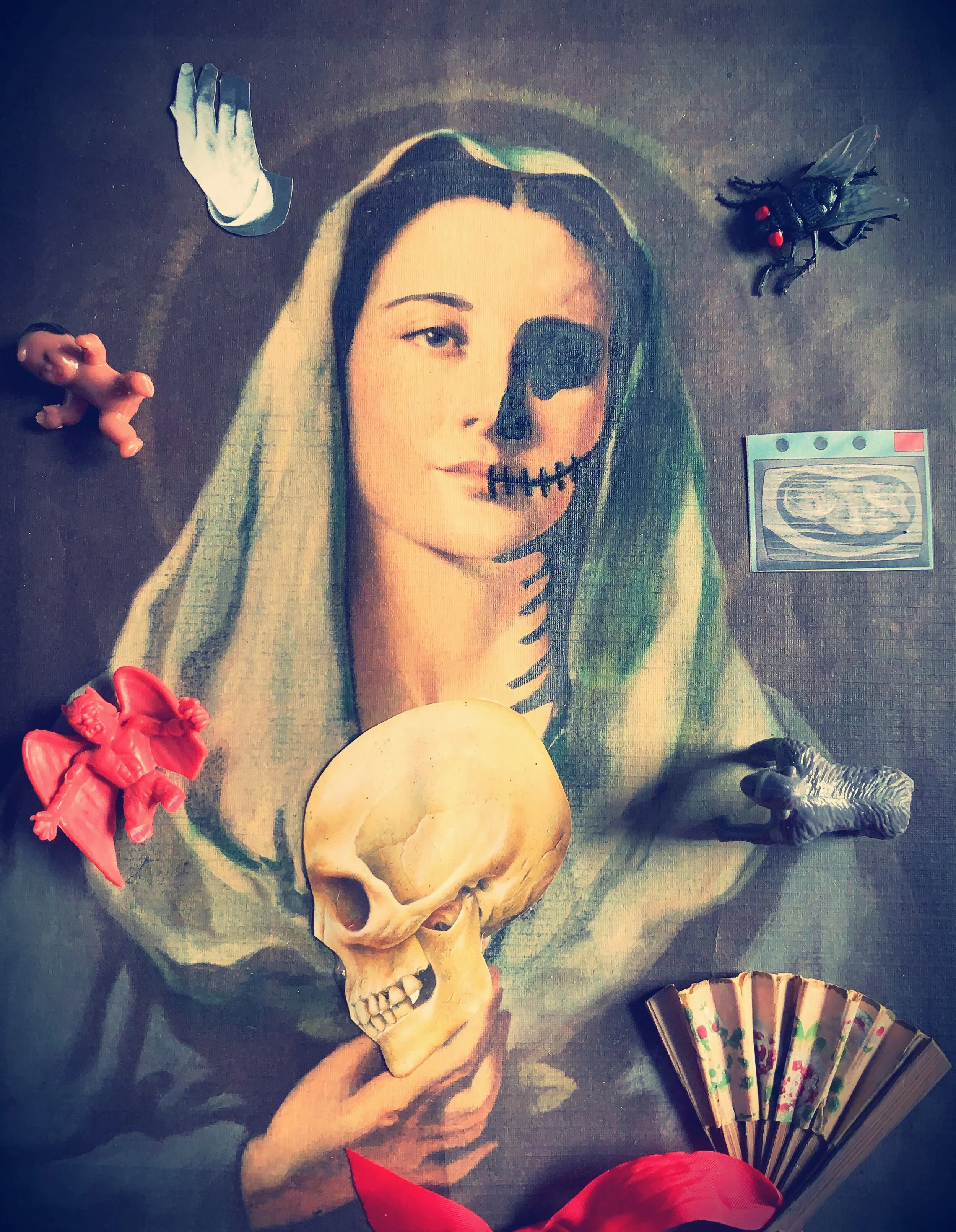 Ruth Somalo, "Landscapes of Research"; Multimedia collage. After years of Death research for my PhD. thesis, I often spend my days dancing through a parallel universe. www.ruthsomalo.com